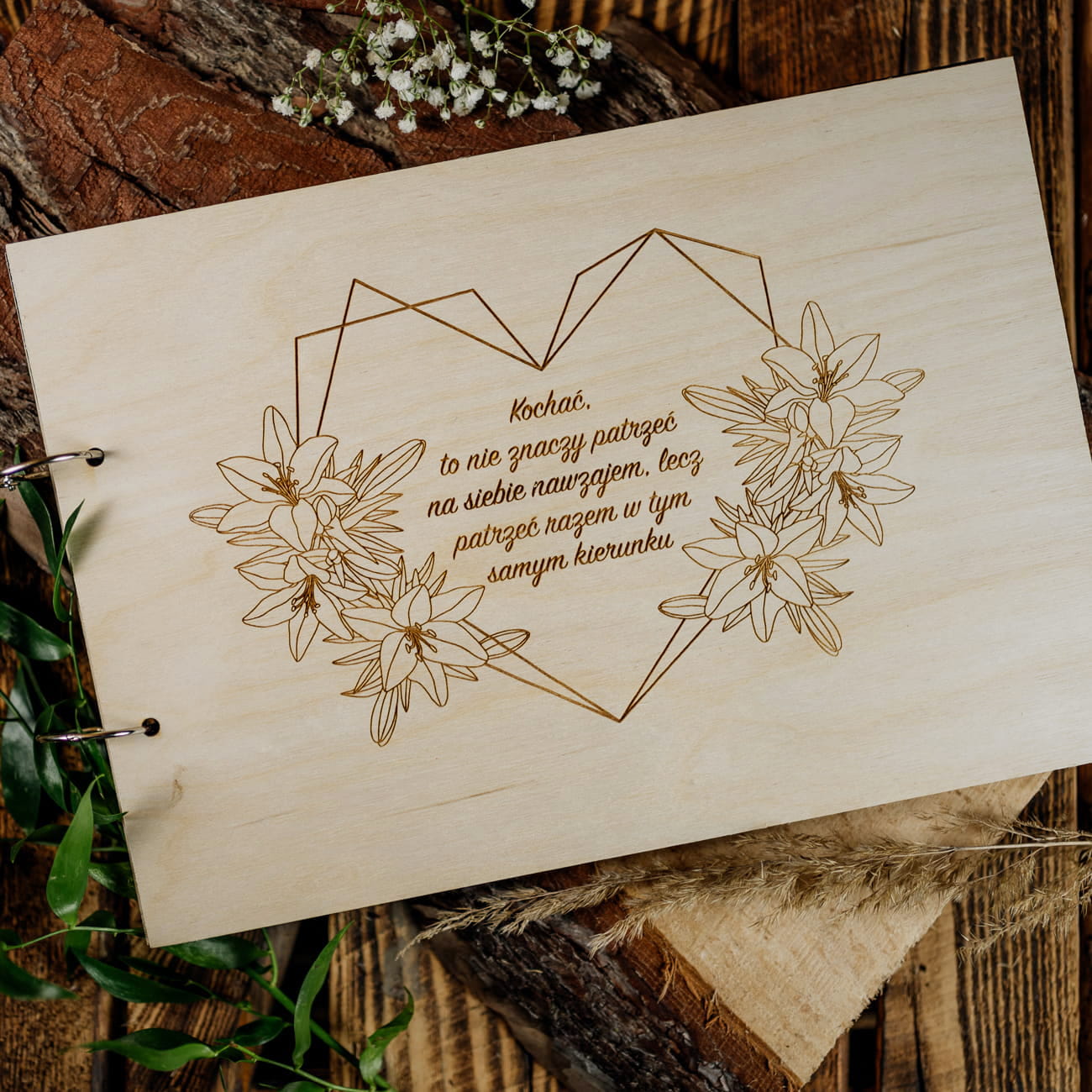 Drewniany album na zdjęcia to piękny detal, oraz prezent dla Ukochanej osoby w dniu Walentynek.