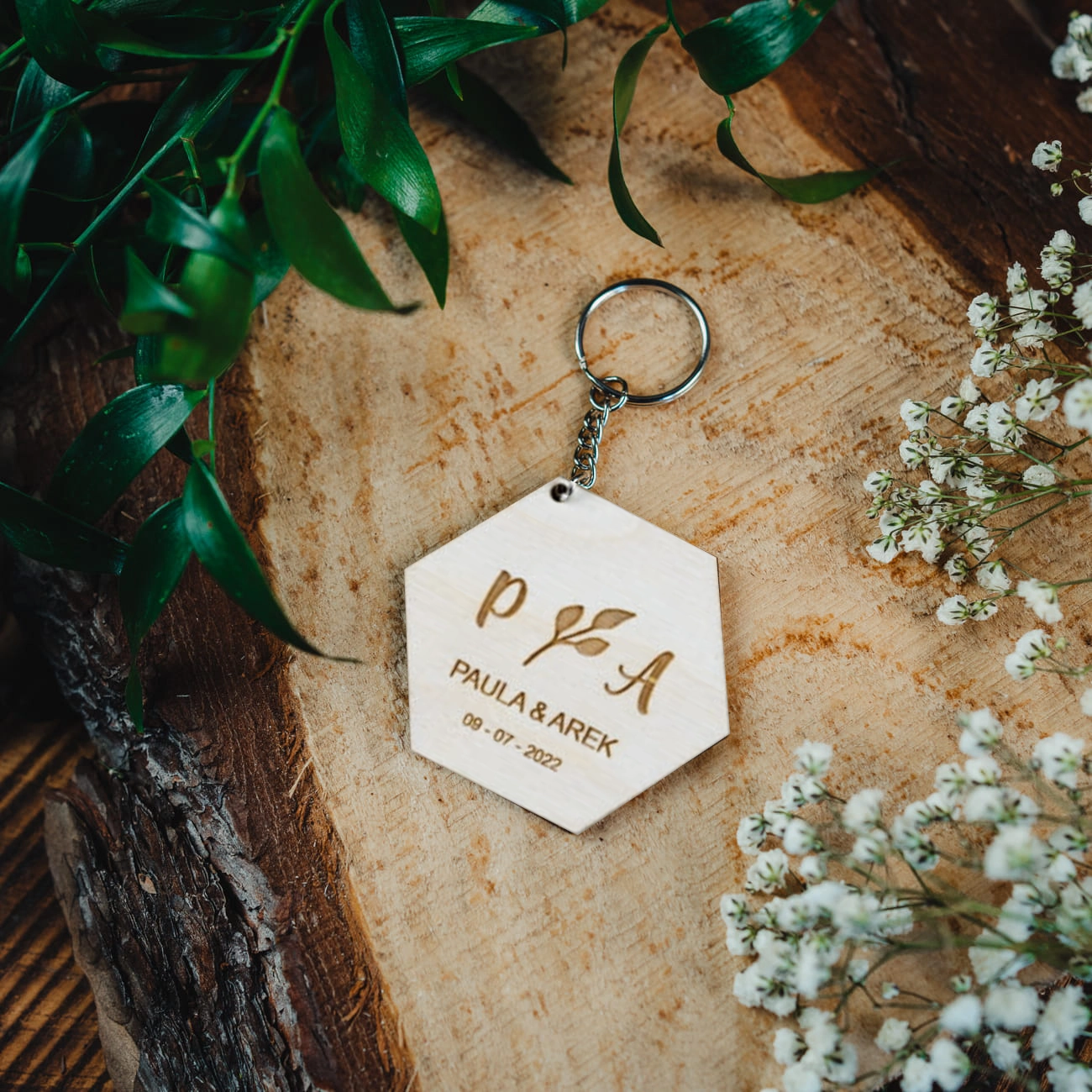Brelok Ślubny - Sześciokąt Sosna
