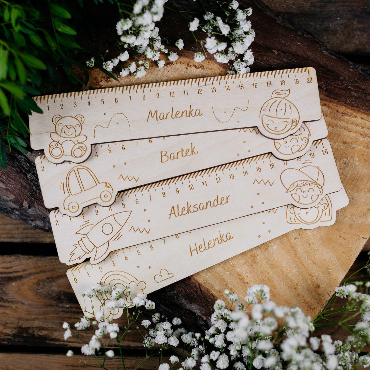 Drewniana linijka dla dziecka z grawerem
