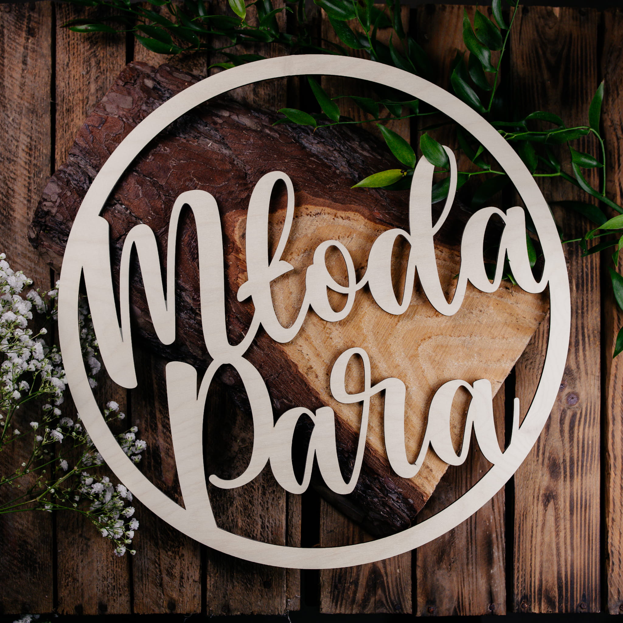 Drewniana obręcz ślubna Młoda Para jest świetną dekoracją na ściankę weselną podczas uroczystości ślubnej. Obręcz drewniana to idealna dekoracja sali weselnej. Drewniana dekoracja świetnie wpasuje się w klimat rustykalny oraz boho. Będzie idealna dla osób ceniących naturę, swobodę oraz drewno. Drewniana obręcz to fajna personalizowana dekoracja weselna. Doskonała do tworzenia w kompozycjach z kwiatami czy naturalnymi liśćmi.