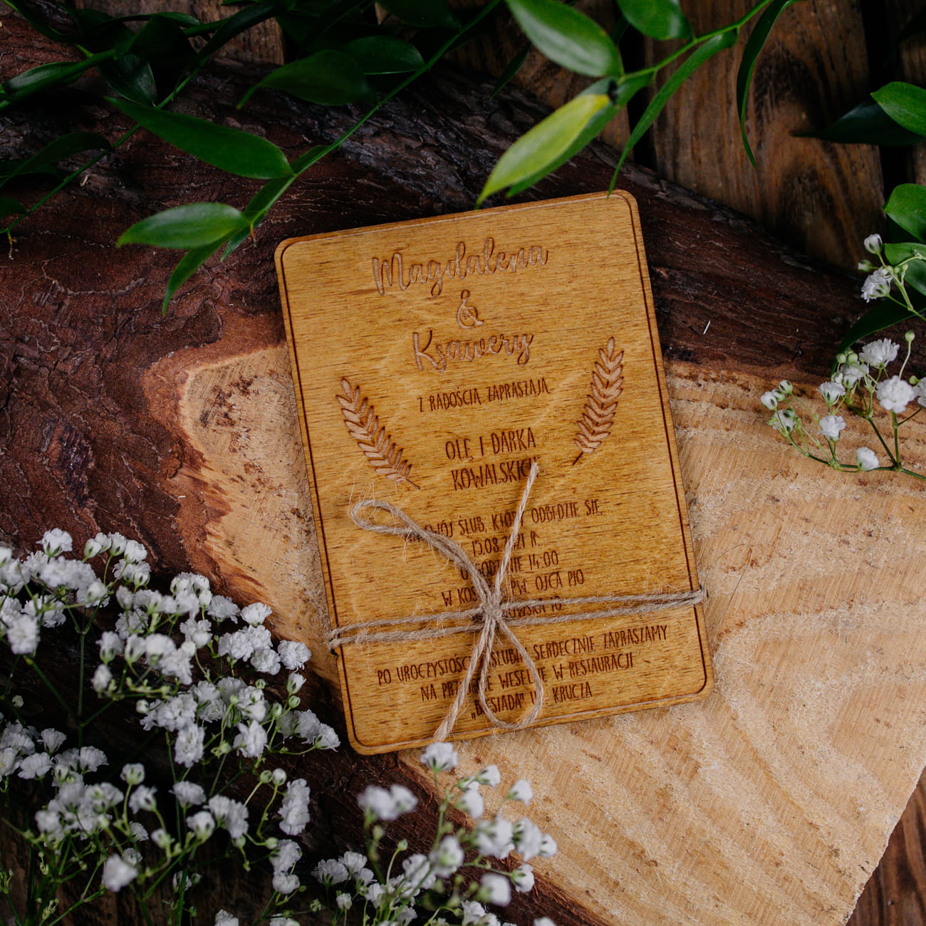 Drewniane zaproszenie - Dąb