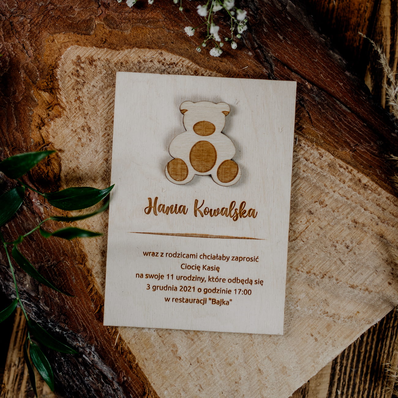 Drewniane zaproszenie na Urodziny