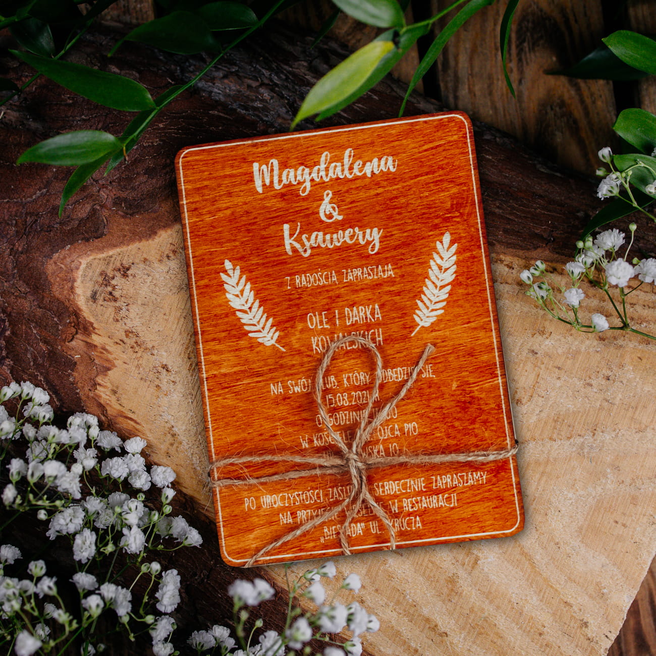 Drewniane zaproszenia ślubne rustykalne
