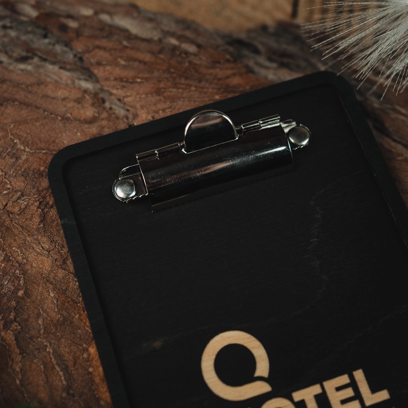 Płatnik wykonany jest ze sklejki drewnianej, która zapewnia trwałość, lekkość oraz naturalny wygląd. Solidny metalowy klips pozwala wygodnie przypiąć rachunek, paragon lub kartę płatności, co ułatwia pracę obsłudze kelnerskiej i zapewnia estetyczne podanie rachunku klientowi.To idealne rozwiązanie dla lokali, które chcą wyróżnić się detalami i zadbać o profesjonalną obsługę gości. Drewniany płatnik pomalowaliśmy w kolorze heban.
