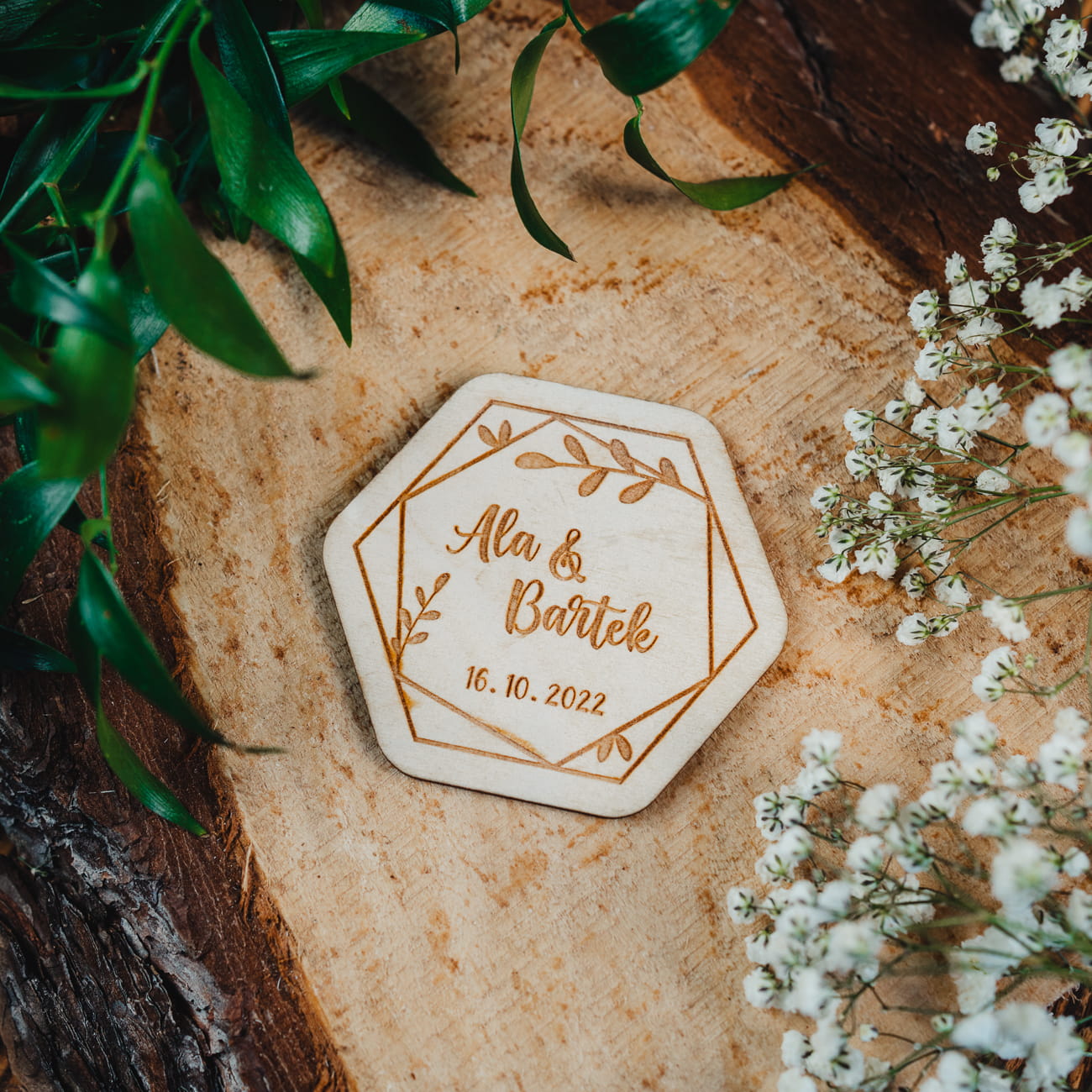 Ślub oraz przyjęcie weselne to jeden z najważniejszych dni w życiu. Drewniany magnes ślubny to cudowna niespodzianka aby podziękować wszystkim gościom, którzy towarzyszyli Nam w tak pięknym dniu.