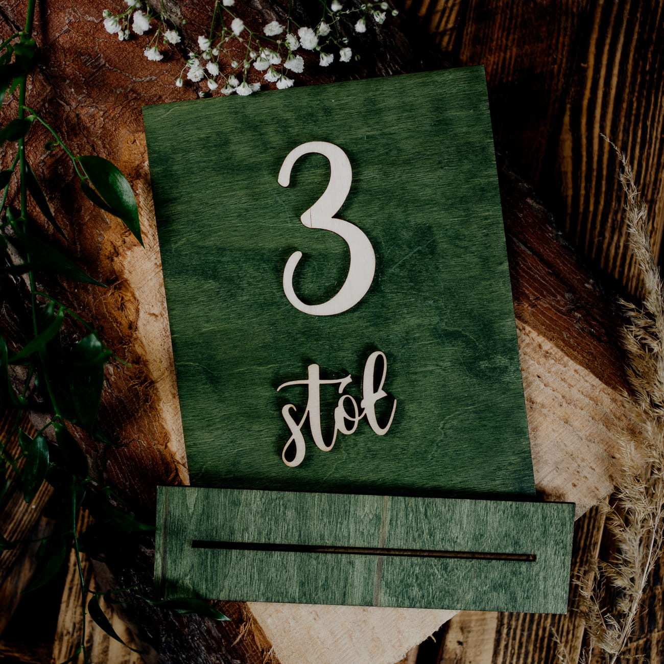Numery na stoły weselne to dziś niezbędnik podczas świętowania uroczystości.To doskonały sposób na rozmieszczenie Gości weselnych , jak również piękny element dekoracyjny sali weselnej. Nasza dekoracja prezentuje się bardzo elegancko, jest dobrze widoczna dzięki czemu goście nie bedą mieli problemu ze znalezieniem stolika. Nasze rustykalne dodatki będą pięknie zdobiły stoły podczas przyjęcia czy wesela. Drewniane numery na stoły weselne wykonaliśmy ze sklejki naturalnej 3mm i pomalowaliśmy oryginalnym olejem do drewna w kolorze zielonym.