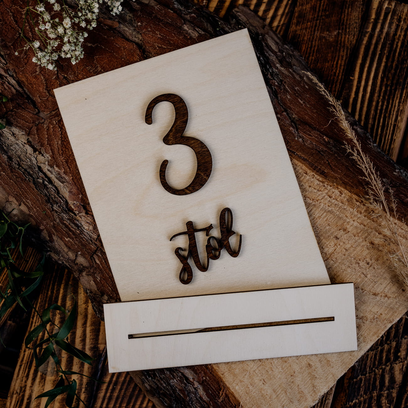 Numery na stoły weselne to dziś niezbędnik podczas świętowania uroczystości.To doskonały sposób na rozmieszczenie Gości weselnych , jak również piękny element dekoracyjny sali weselnej. Nasza dekoracja prezentuje się bardzo elegancko, jest dobrze widoczna dzięki czemu goście nie bedą mieli problemu ze znalezieniem stolika. Nasze rustykalne dodatki będą pięknie zdobiły stoły podczas przyjęcia czy wesela. Drewniane numery na stoły weselne wykonaliśmy ze sklejki naturalnej 3mm i pomalowaliśmy oryginalnym olejem do drewna w kolorze naturalnym sosna.