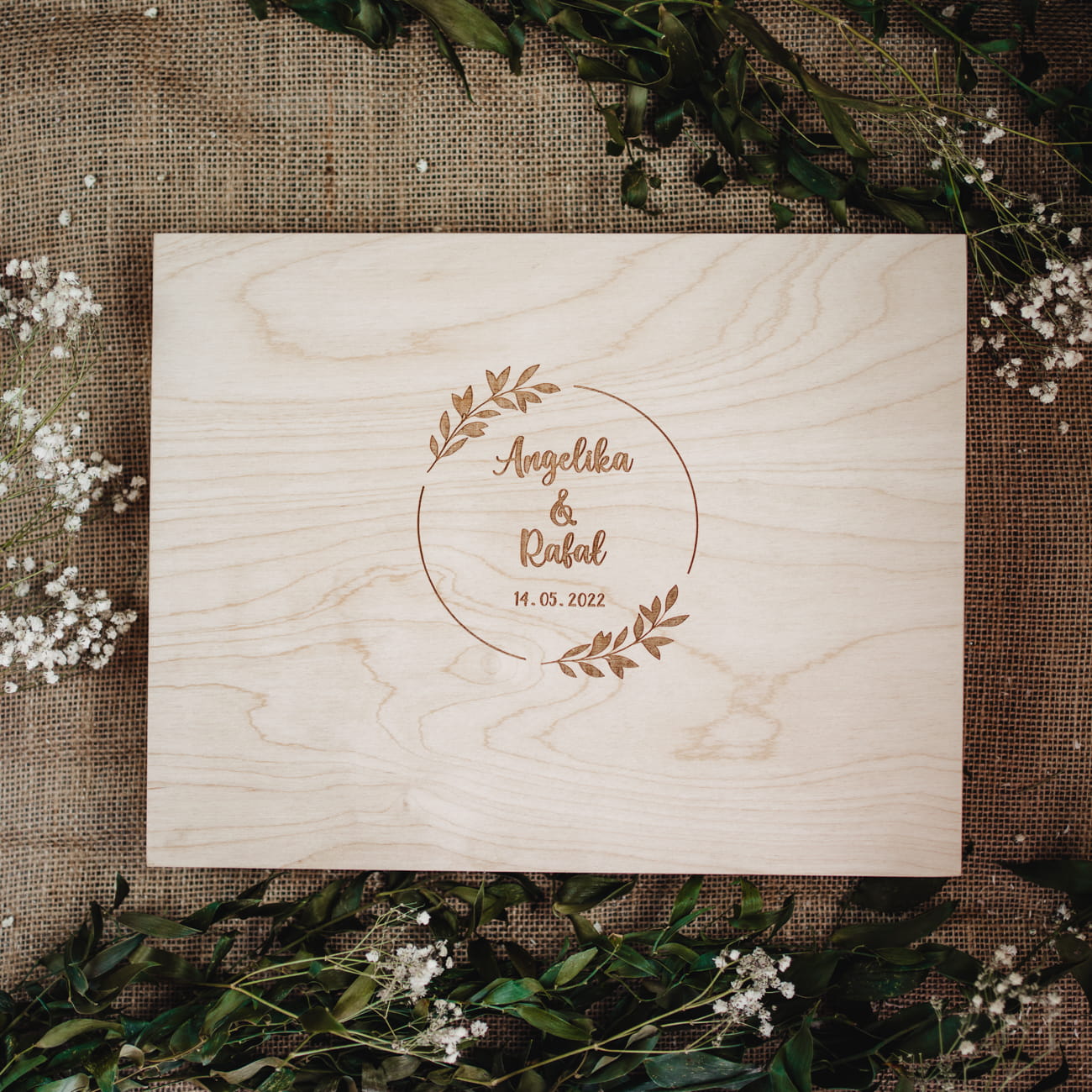 Drewniane pudełko na album będzie stanowić piękną pamiątkę na długie lata. Wykonaliśmy je ze sklejki naturalnej oraz pomalowaliśmy olejem w kolorze naturalnym sosna. Równie pięknie będzie prezentować się na fotografiach.Dekoracje, które wykonujemy bedą służyć nie tylko na okazje, ale i na długie lata. Będą też piękną pamiątka do której możemy powrócić w każdej chwili i cofnąć się wspomnieniami daleko do tyłu. Na górze pudełka wypalony został grawer, który pięknie podkreśli piękne chwile uwiecznione na fotografiach. W pudełku zmieści się album w formacie 30 x 20 lub mniejszym. Istnieje możliwość indywidualnego graweru (np logo firmy).
