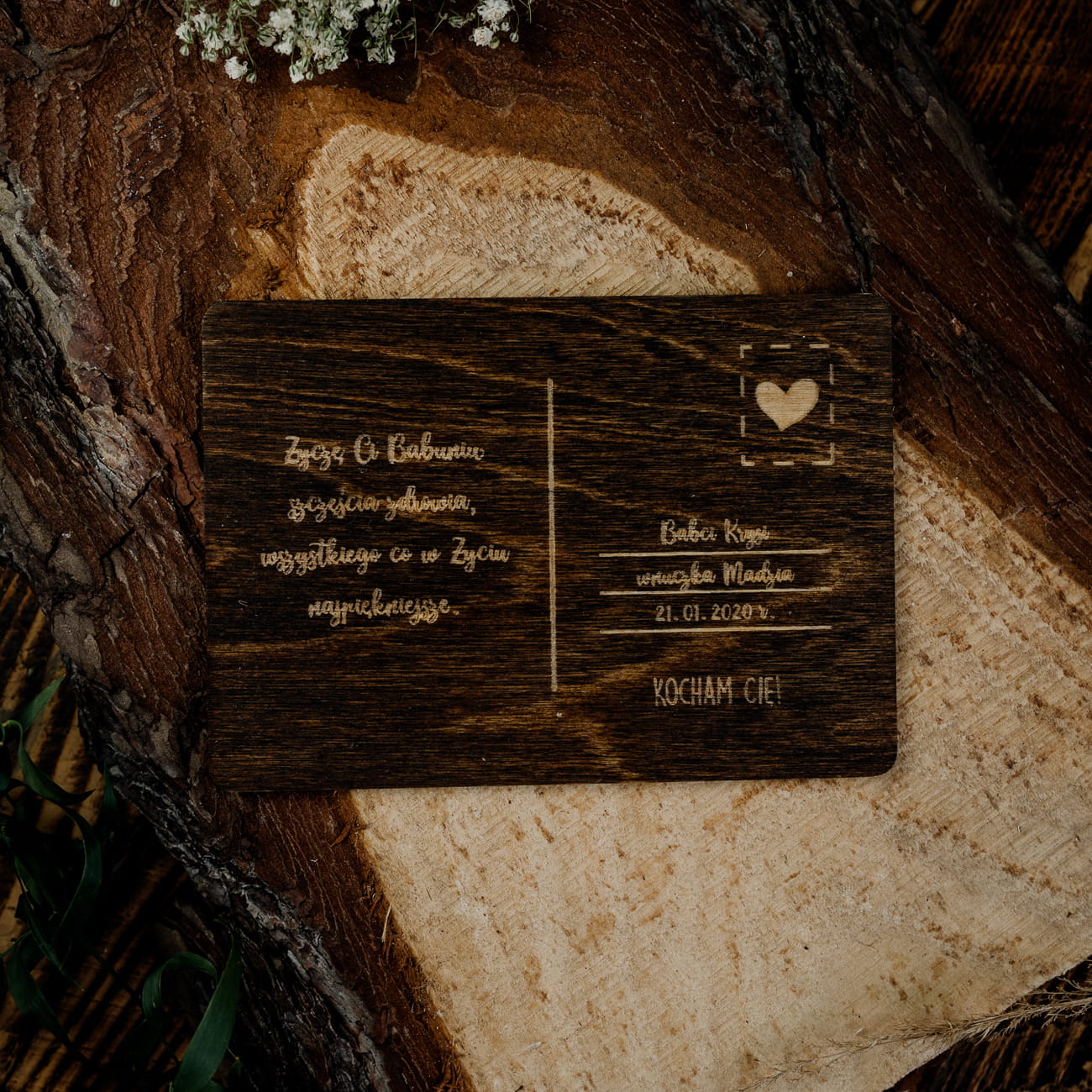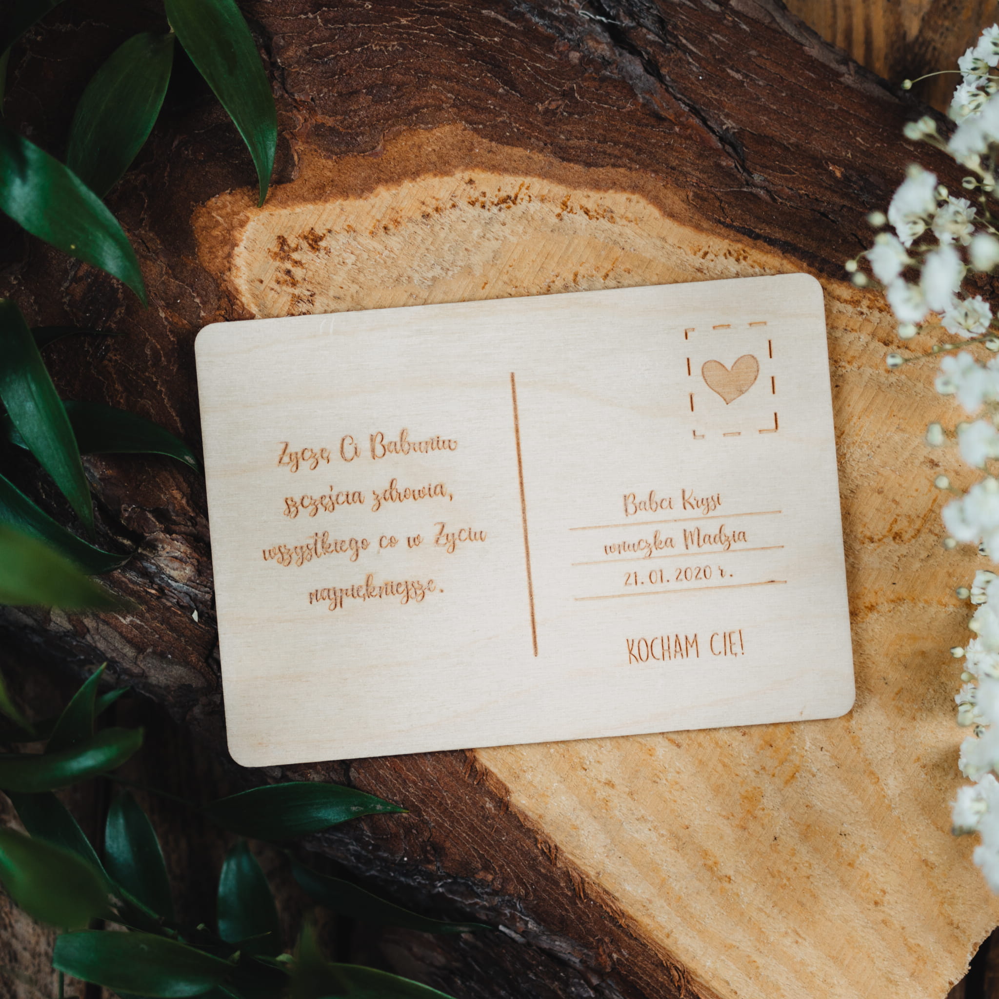 Drewniana pocztówka będzie wyjątkowym prezentem z okazji Dnia Babci i Dziadka. Prezent daje możliwość przekazania pięknych życzeń w postaci listu.
