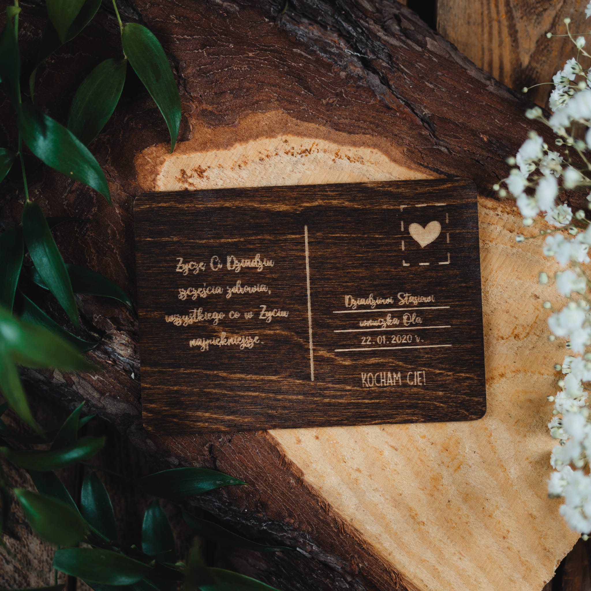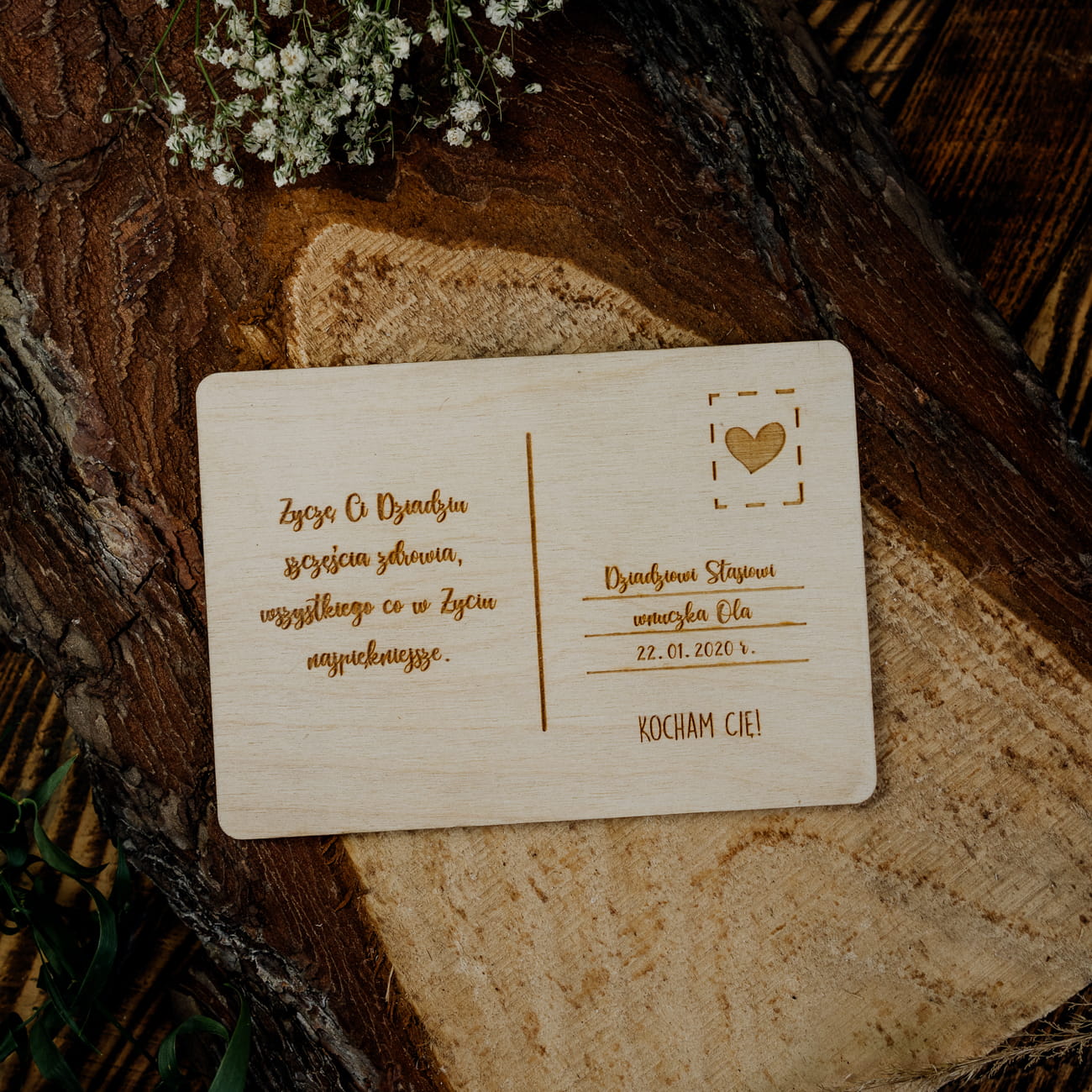 Drewniana pocztówka będzie wyjątkowym prezentem z okazji Dnia Babci i Dziadka.