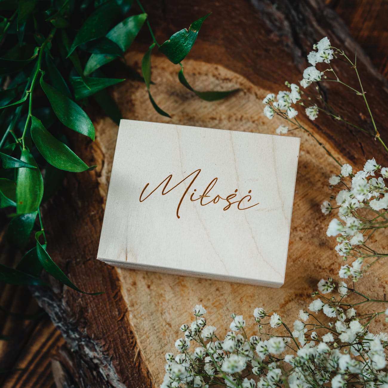 Drewniane pudełka na obrączki będą świetnie wyglądać podczas przygotowań, oraz zrobią duże wrażenie na gościach. Równie pięknie będą prezentować się na fotografiach oraz sesjach zdjęciowych.