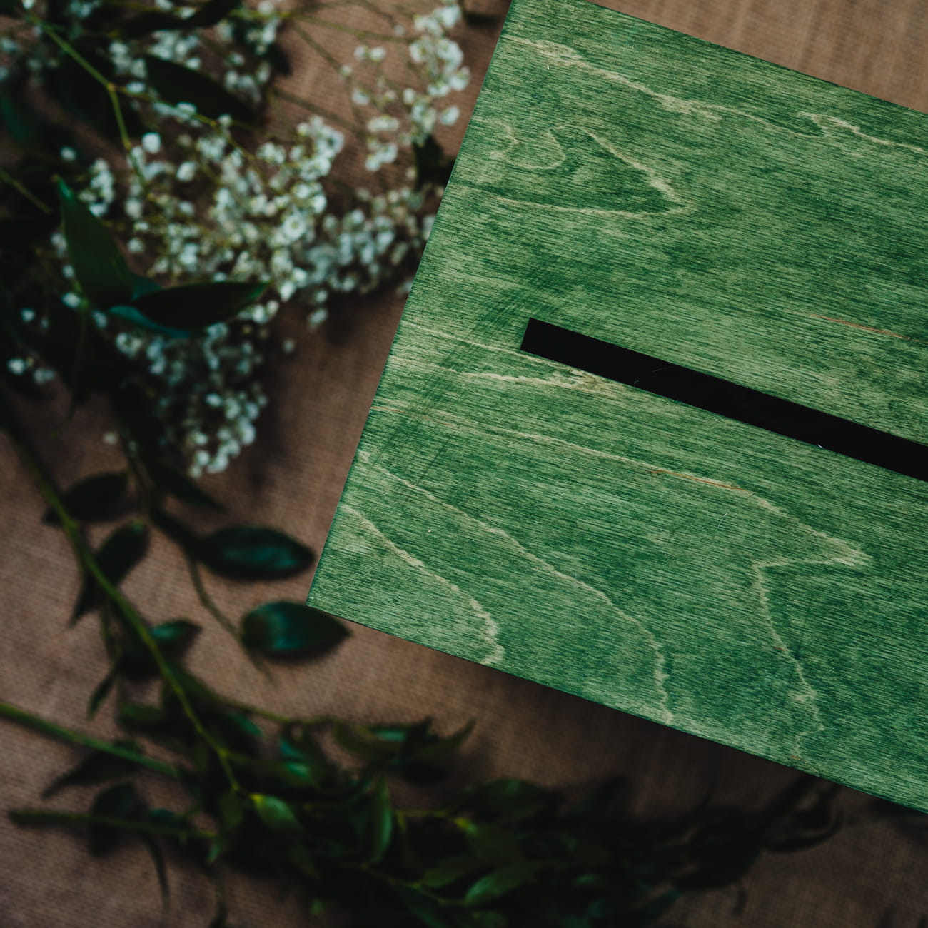 Drewniane pudełka na koperty będą stanowić piękny dodatek w klimacie rustykalnym bądź boho.Drewniane pudełka na koperty będą świetnie wyglądać podczas przygotowań, oraz zrobią duże wrażenie na gościach. Równie pięknie będą prezentować się na fotografiach oraz sesjach zdjęciowych.Nasze drewniane pudełka na koperty wykonane są z naturalnej sosny, oraz sklejki 3mm. Drewniane pudełka na koperty malujemy ręcznie oryginalnym olejem do drewna w kolorze zielonym. Kolor i faktura drewna może różnić się lekko od tego co widzimy na zdjęciach.