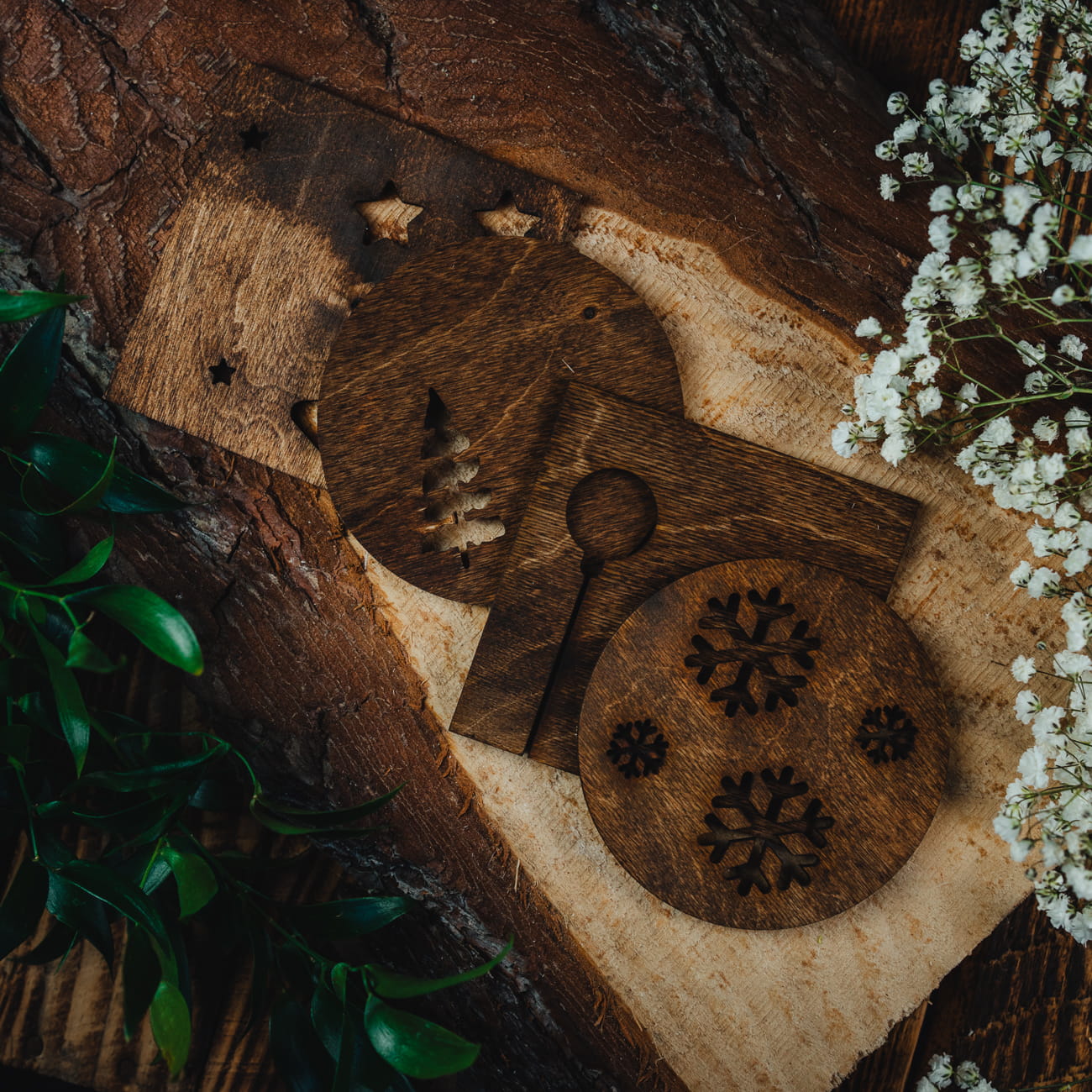 Drewniane świąteczne podkładki pod kubki