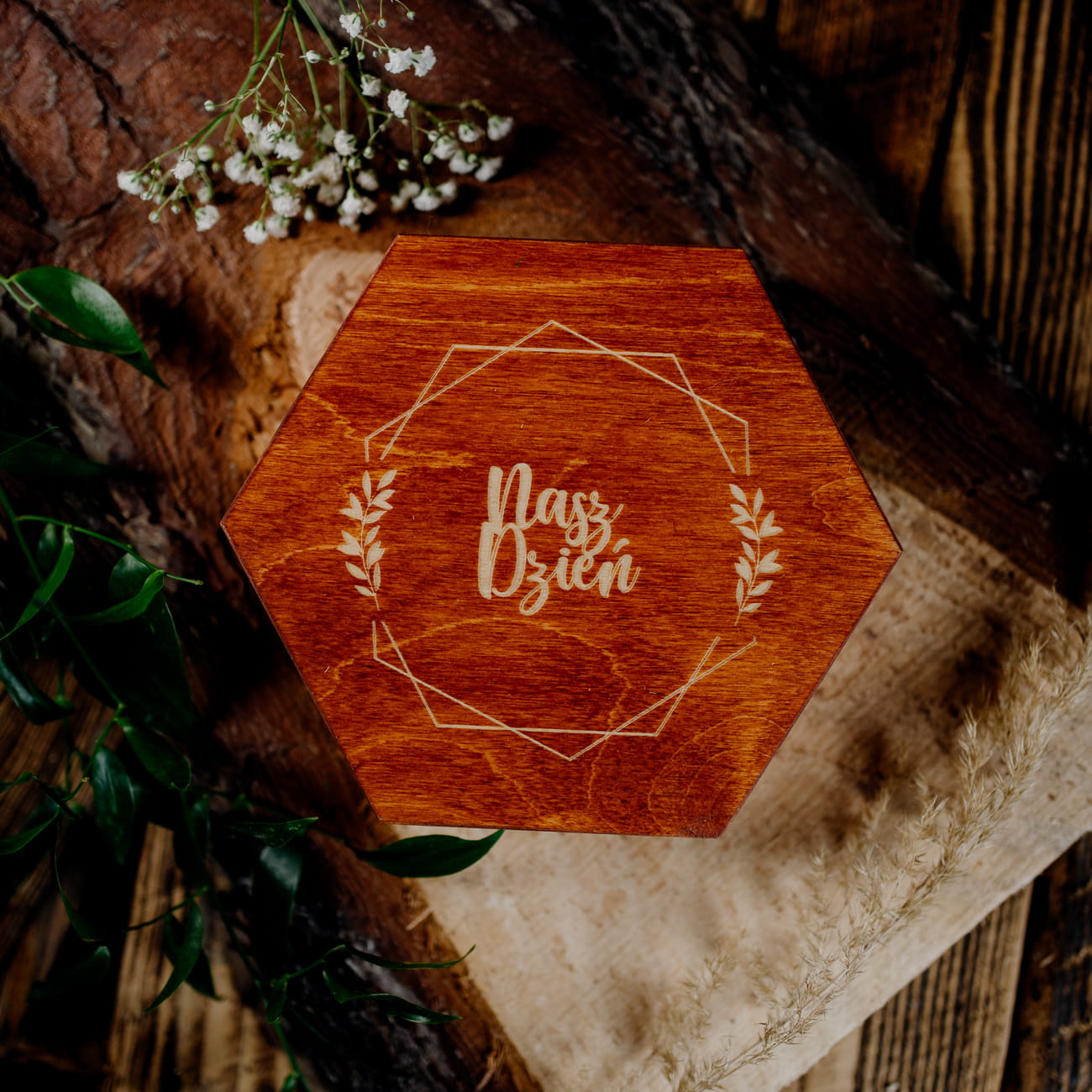 Drewniane szkatułki na obrączki będą świetnie wyglądać podczas przygotowań, oraz zrobią duże wrażenie na gościach. Równie pięknie będą prezentować się na fotografiach oraz sesjach zdjęciowych.