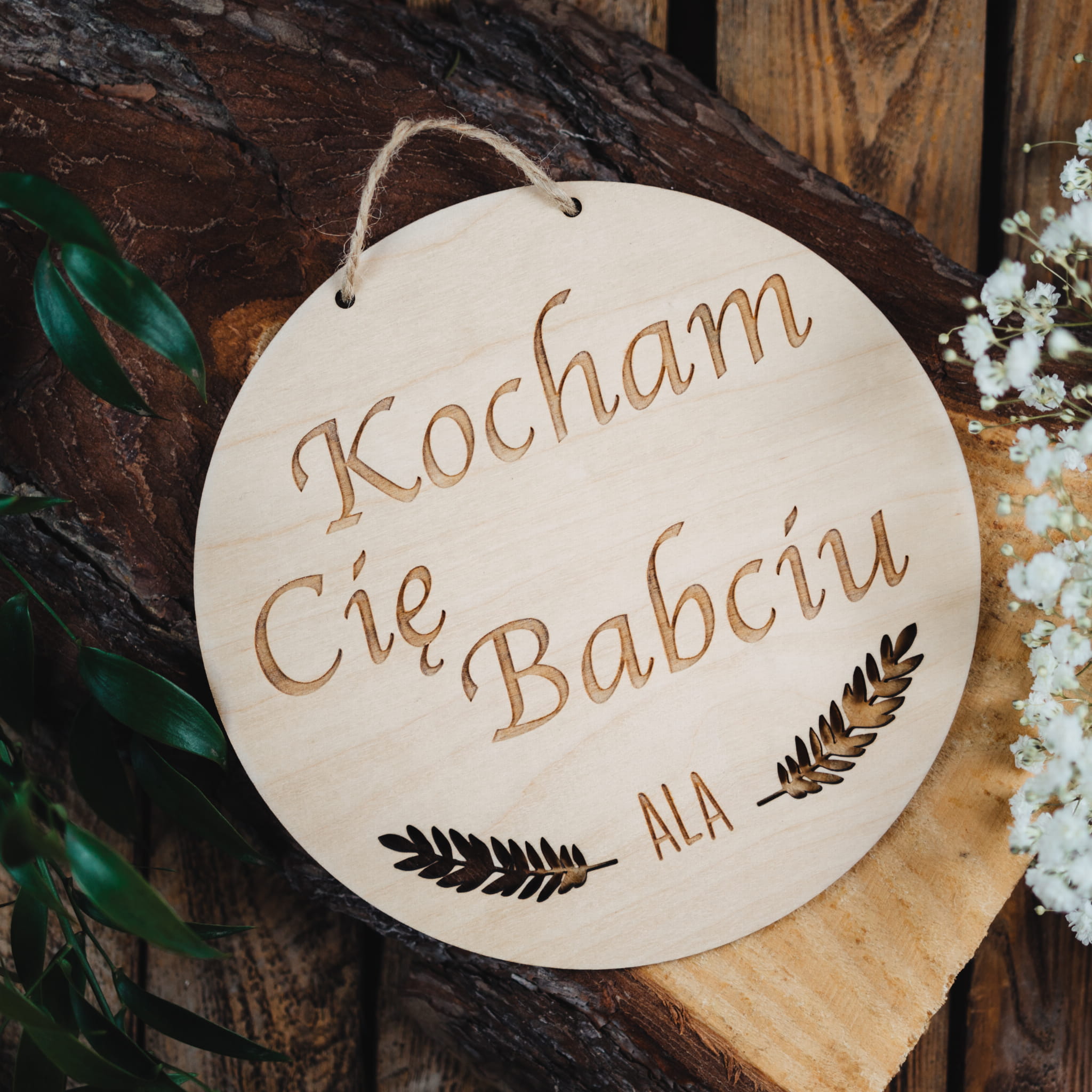Drewniana tabliczka koło będzie piękną pamiątką na długie lata.