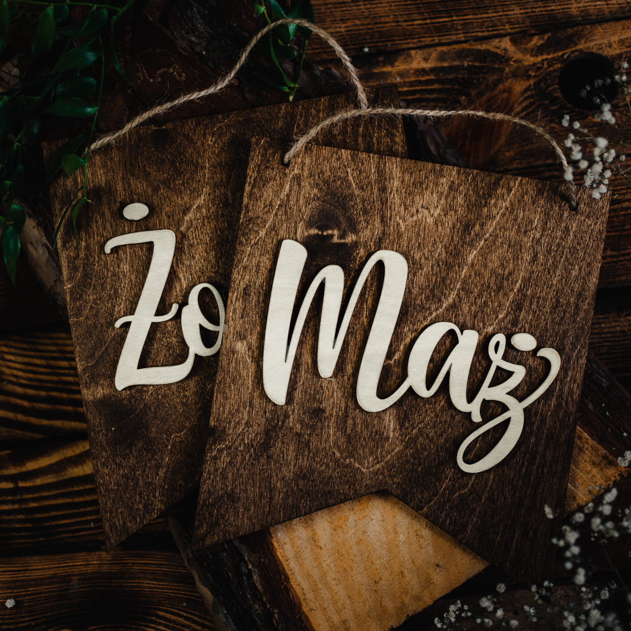 Piękne drewniane tabliczki na krzesła z napisami mąż i żona to piękna dekoracja na ślub bądź przyjęcie w plenerze. Prezentują się pięknie i idealnie wpisują się w rustykalny klimat, boho oraz styl romantyczny.