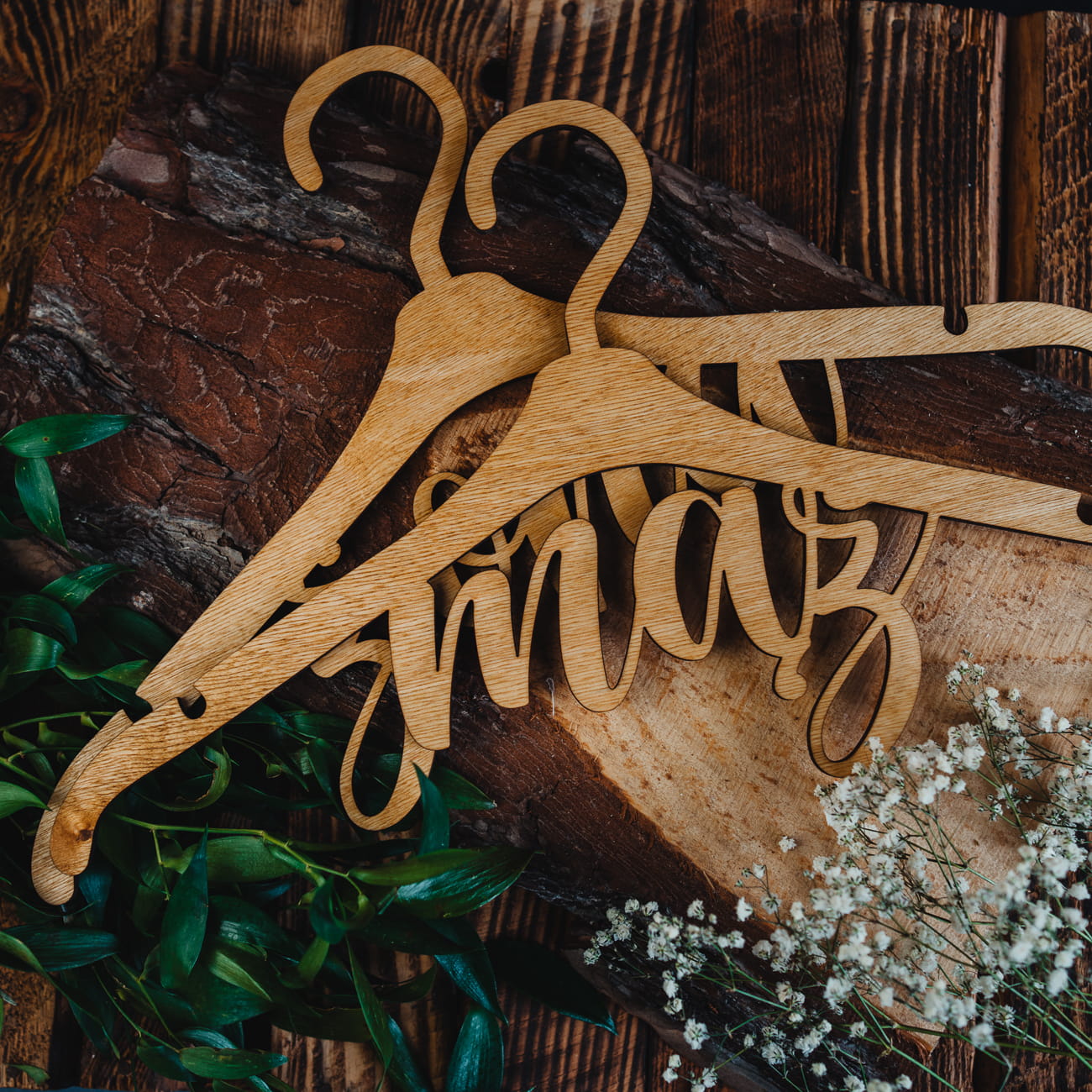 Drewniane wieszaki rustykalne ślubne