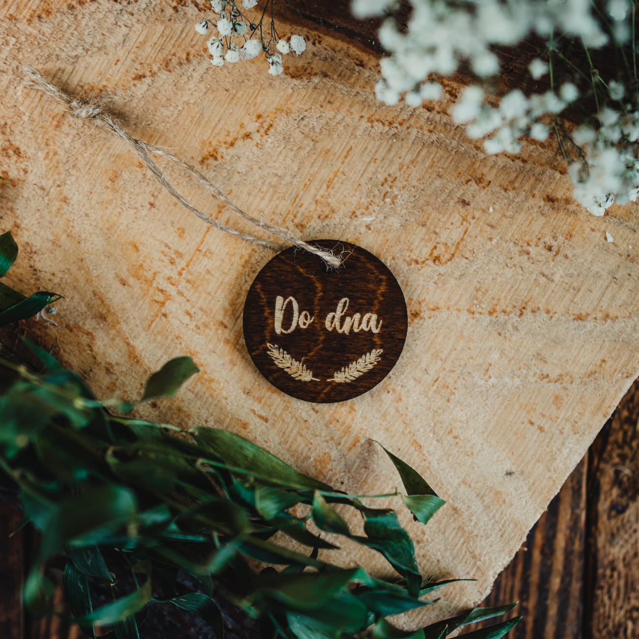 Wódka weselna i świetne zawieszki na alkohol rustykalne? O tak! U Nas każdy znajdzie coś dla siebie! W Naszej ofercie mamy zawieszki na alkohol rustykalne. Tylko butelka z odpowiednią ozdobą wygląda elegancko na ślubnym stoliku, a przy tym z odpowiednim atrybutem staje się typowo ślubnym alkoholem. Nasze rustykalne zawieszki na alkohol są też nie tylko piękna ozdobą na alkoholu weselnym, ale również zdobią stół i sale weselną podczas świętowania tej uroczystości. Napis wypalony jest laserem, zawieszka ze sznurka jutowego. Kolor i faktura drewna może różnić się lekko od tego co widzimy na zdjęciach.